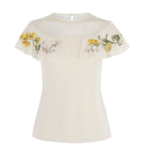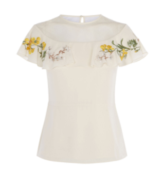 km embroidered ruffle shoulder top