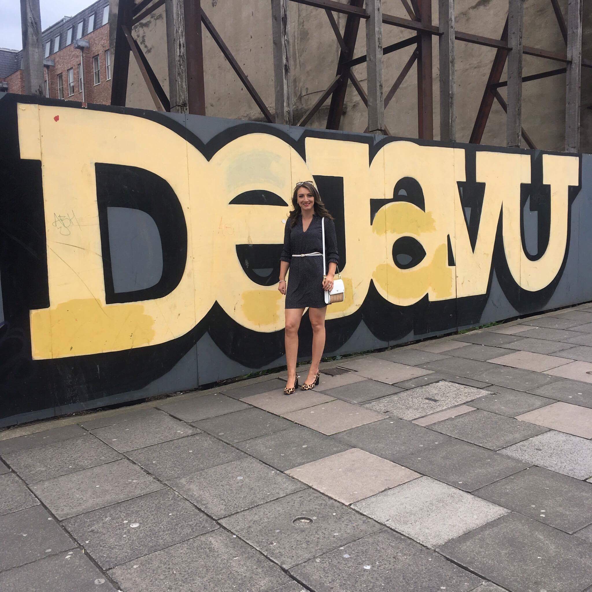 Blue Spotted V-Neck dress, £19.99 H&M (SOLD OUT) / / White leather belt, £12.50 M&S / Pearl ear Jacket, £155 Thomas Sabo / / Round-frame acetate sunglasses, £230 Gucci / Cut out pearl disc ring, now £5 Accessorize