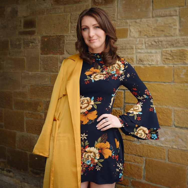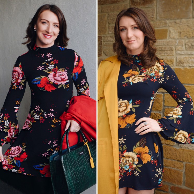 You will see it in bright block colour statement pieces such as jackets/bags or in punchy mustard floral’s on dresses and accessories like this Helen Dress. You will see it paired with a lot of black or grey check clothing too for an on trend look.