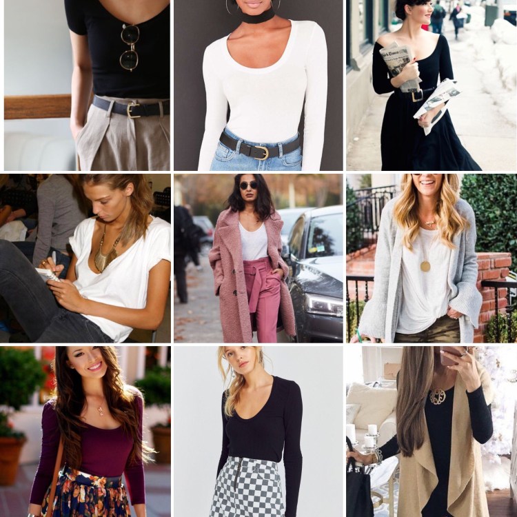 These wide scoop necks below are a match made in heaven for a Pear, Rectangle and smaller busts.