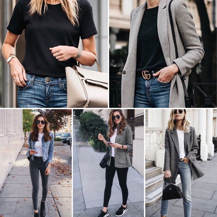 The round neck T-shirts look great under a blazer with jeans. I love the longer sleeve round necks under a gilet with jeans or tucked into a high waisted skirt or trousers for work wear.