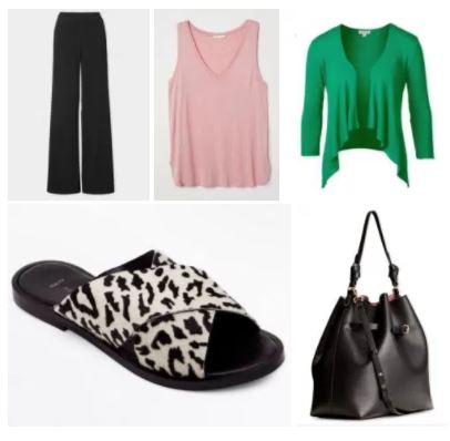To show you how easy it is to create a simple colour capsule, I have broke down the outfit to explain colour wardrobe options. I have also included similar examples of my Green, Pink and monochrome outfit in a range of capsule’s that create 3 simple outfits.