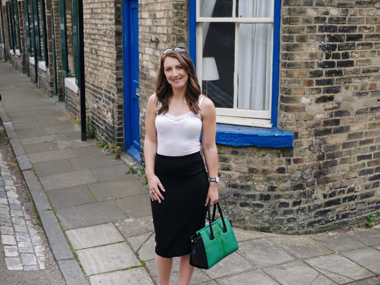 CLICK LINKS BELOW TO SHOP THE LOOK: Ivory Fitted Blazer, £39.99 H&M / Black cotton T-Shirt, £6.99 H&M / Black silver buckle western belt, £10 River Island / Green top handle trapeze bag, £79 Charles & Keith / Green snake print heeled ankle boots, £35 / Black Marrakesh high rise kick flare, £195 […]